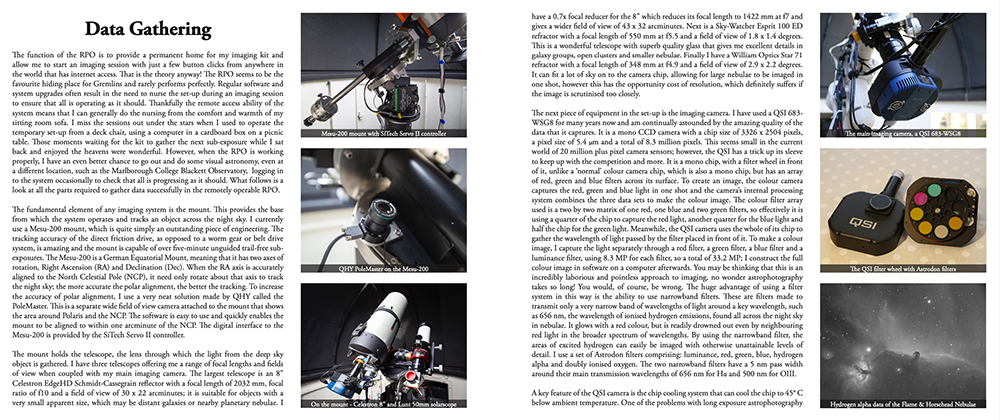 In the Marlborough Night Garden - Volume 2 shows the results of the activity between July 2016 and June 2019, with over 500 hours of data in 30 colour photographs of deep sky objects as seen from a latitude of 51° North. The accompanying text brings to life the full beauty of these cosmic targets."