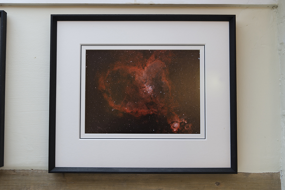 I have another mini exhibition of my astrophotographs on display in The Physics Department at Marlborough College. The department purchased five images. They are all framed with a single black mount and a high gloss black frame moulding. This is the style that I used for the exhibition 'In The Marlborough Night Garden'. There are three 'standard' sizes that I have made to date: