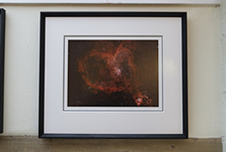 If you go into The Food Gallery at the western end of Marlborough High Street, you will find towards the back of the coffee shop a selection of four of my astrophotographs. These neatly illustrate one style of framing that I have successfully employed. The print is 12" x 9" and is mounted with a triple border, including a smart dark grey thin line. The overall frame size is approximately 19" x 17". The price for a frame like this is £200. All other sizes are available on request.
