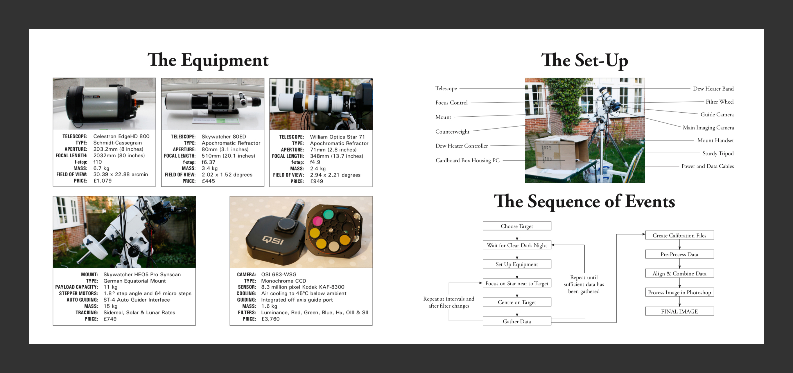 One question that arose regularly was whether the images were for sale and if there was a book of the images available to purchase? The images are indeed for sale and you can see full details about that further down this page. At the time of the exhibition there was no book, however, Jonathan and I quickly set about self-publishing 'In The Marlborough Night Garden - Volume One'. A hardback book of twenty one images, including the seventeen images of the exhibition, plus four further images that I had completed after the end of the exhibition. It is printed on high quality heavy photographic style paper as image reproduction was the most important factor for me. Each image is accompanied by an explanation of the target photographed and the full details of the target, similar to the information presented with the Deep Sky objects in this website. There are several further sections at the end of the book; The 'Marlborough' Galaxy, A Brief Guide To Astrophotography, Measuring Distance and A Glossary Of Terms.