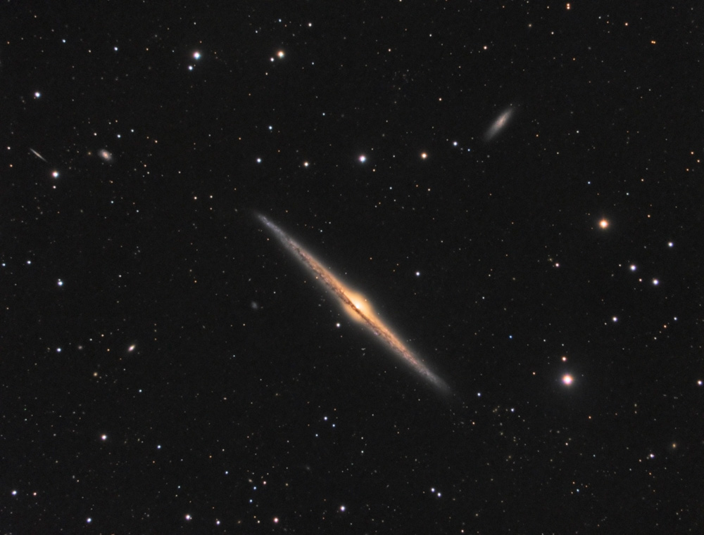 The Needle Galaxy is a giant spiral galaxy located in the constellation of Coma Berenices and is one of brightest members of Coma I galaxy cloud, containing about 206 galaxies.
