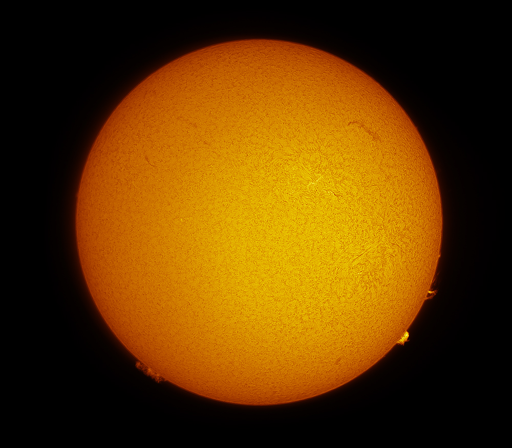 I enjoyed reasonable sky conditions today. The disk has some interesting filaments and the lower limbs have some fine prominences.