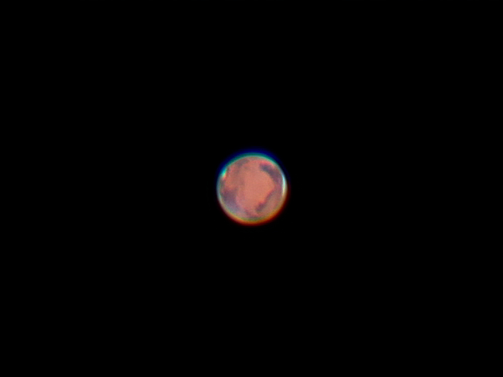 I have only ever tried to image Mars once, that was on 15th April 2014. I used my Canon EOS 60D in video mode to shoot several clips and chose the most successful one after processing them all. I am amazed at what I managed to capture as there are some clear surface features visible and even a suggestion of the polar ice caps.