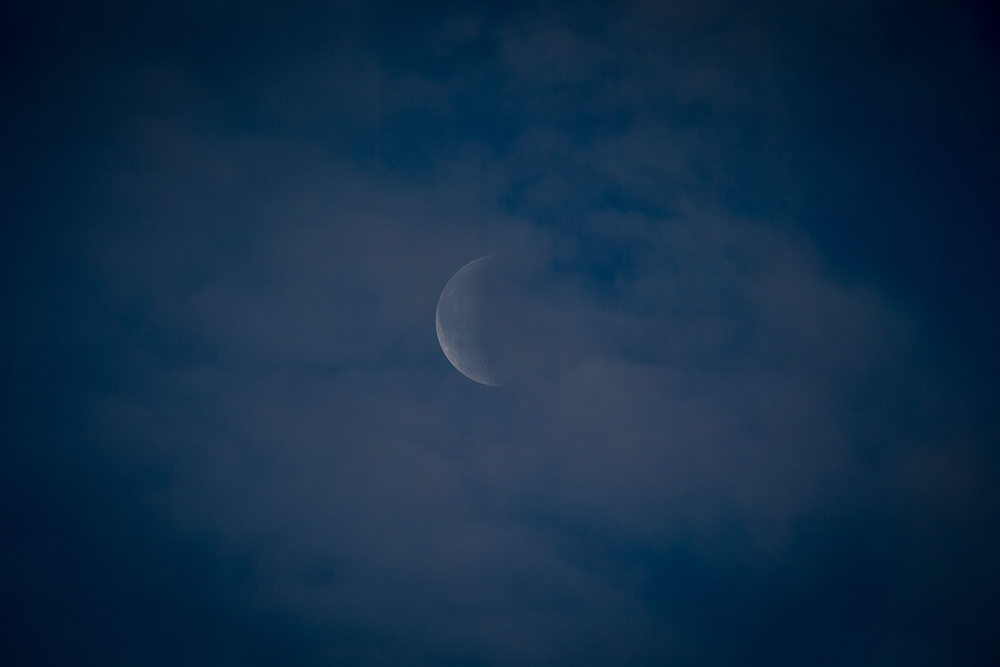 While waiting for the clouds to clear to take a series of photos of the 36% waning Moon (see next image), I also took a shot of the Moon hiding behind the thin veil of cloud. I processed the image in Lightroom and rather like the subtle mystical look of this shot.