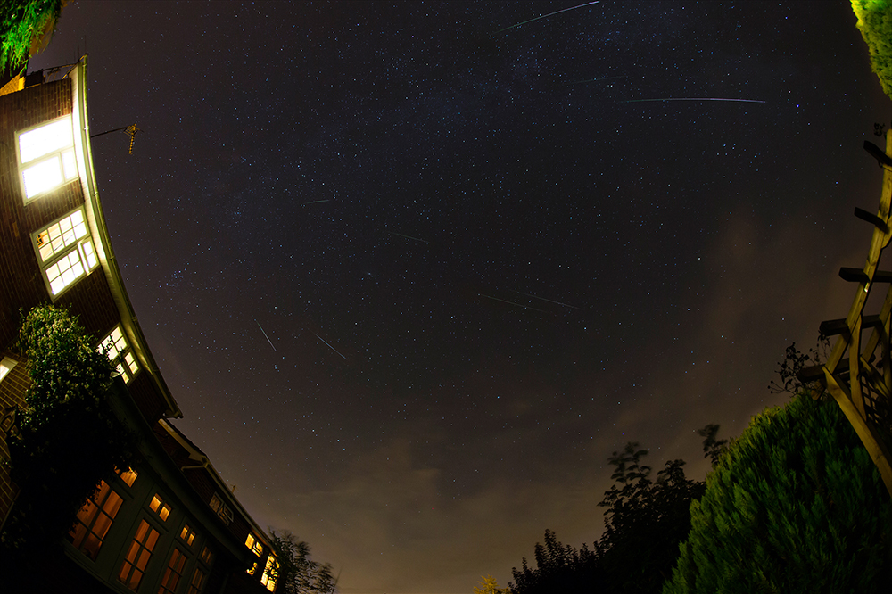 The finest meteor shower of the year is the Perseid meteors in August. I set the camera up and left it taking images for about an hour. I picked out the nine frames that had caught Perseids and created this construct in Photoshop.